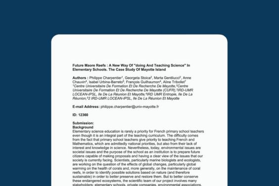 Poster de Philippe Charpentier à Wiomsa, 12ème édition: « Future Maore Reefs, a new way of doing and teaching science in elementary schools, the case study of Mayotte Island »